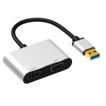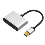 تبدیل USB به HDMI-VGAشما می توانید با استفاده از تبدیل USB3.0 به HDMI و VGA مدل کامپیوتر یا لپ تاپ خود را به صفحه نمایش بزرگتر با ورودی HDMI یا VGA (تلویزیون، مانیتور، پروژکتور و …) متصل و از کیفیت بالای آن لذت ببرید. مبدل USB به HDMI-VGA از سیستم عامل ویندوز و مک پشتیبانی می کند و دارای یک درایور داخلی برای راه اندازی می باشد. فقط یک بار تبدیل Vnet USB3.0 AM to HDMI-VGA را به دستگاه خود متصل کنید و مراحل نصب را اجرا کنید. از خصوصیات USB به HDMI-VGA وی نت می توان به موارد زیر اشاره نمود: کیفیت ساخت بالا، پشتیبانی از رزولوشن Full HD (1920×1080)، قابل استفاده برای سیستم عامل های Win XP/7/8 و Mac OS، قابلیت نمایش تصویر بصورت همزمان بر روی هردو پورت خروجی (HDMI و VGA) دستگاه، بدنه آلومینیومی و سندبلاست شده دستگاه که باعث مقاومت در برابر خط و خش، تبادل خوب حرارتی و زیبایی در ساخت دستگاه می گردد.