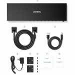 سوئیچ 8 پورت KVM یوگرین مدل UGREEN CM294-70440 دارای هشت پورت VGA و هشت پورت USB 2.0 به عنوان ورودی می باشد. یک پورت VGA و دو پورت USB 1.0 و دو پورت USB 2.0 نیز پورتهای خروجی آن می باشد. با استفاده از این سوئیچ کی وی ام میتوانید 8 کامپیوتر را با استفاده از یک دستگاه کنترل کنید. UGREEN CM294-70440 8Port KVM Switch قابلیت پشتیبانی از تصاویر با وضوح بالا را دارد و دارای حداکثر وضوح تا 1920×1080@60 هرتز می باشد. باید این نکته را توجه کنید که این سوئیچر VGA فقط ویدیو را انتقال می دهد و برای خروجی صدا، لطفاً بلندگوی خود را مستقیماً به رابط های 3.5 میلی متری رایانه/رایانه وصل کنید. شما می توانید سوئیچ 8 پورت CM294-70440 یوگرین را با قیمت مناسب و گارانتی اصلی از فروشگاه دنیا کامپیوتر تهیه کنید.