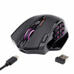 حالتهای دوگانه اتصال بی سیم 4/2 گیگاهرتزی و حالت با سیم از طریق کابل USB-C به انضمام 12 کلید جانبی از ویژگیهای موس گیمینگ ردراگون مدل REDRAGON IMPACT ELITE M913 است که آنرا برای گروه بازیهای MMO ایدهآل نموده است. اتصال دوگانه بعلاوه کلیدهای میانبر و دسترسی آسان، شما را برای حریفانتان تبدیل به یک دشمن خطرناک خواهد نمود. ماوس مخصوص بازی REDRAGON IMPACT ELITE M913 کلید شامل 12 کلید جانبی و نورپردازی با طیف 8/16 میلیون رنگی است که حتی در حالت بی سیم همه با نرم افزار قابل مدیریت و تنظیم هستند. پس به روشی که دقیقا مورد نظرتان است برای پیروزی آماده شوید. اتصال با فناوری بیسیم ردراگون با سرعت زیر یک میلی ثانیه سیگنال ثابت و بازه پوشش دهی استثنایی را ارائه میدهد. با تاخیر بسیار کم فناوری بلوتوث بازه انطباق پذیری گسترده ای را با بیشتر دستگاهها فراهم می کند و حتی پس از اتمام باطری, کابل USB را برای حالت بازی با سیم وصل کنید تا هنگام شارژ همچنان به بازی ادامه دهید. REDRAGON IMPACT ELITE M913 Gaming Mouse قابلیت تنظیم روی 5 سطح DPI حسگر (1000/2000/4000/8000/16000) را دارد که برای پاسخ به انواع نیازهای شما طراحی شده است و این امکان را فراهم مینماید تا شما به راحتی و در کوتاهترین زمان برای انواع رقابتها آماده باشید.